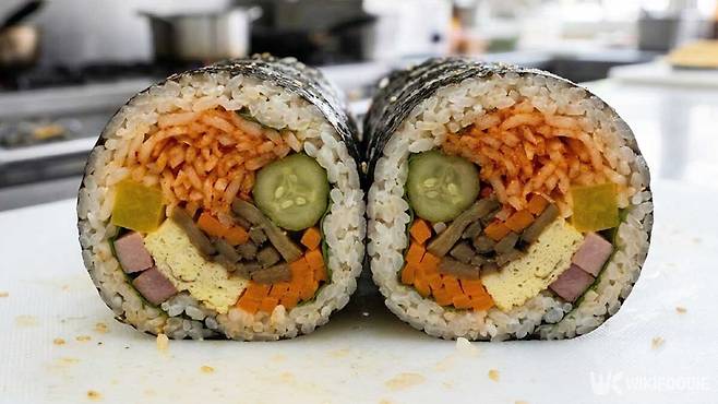 오늘은 단무지 대신 무생채 또는 오이절임을 넣어 만드는 김밥을 소개한다. 평소 김밥과 재료는 크게 다르지 않지만, 한 가지 재료만 바꿨을 뿐인데 전체 맛이 훨씬 산뜻해진다.