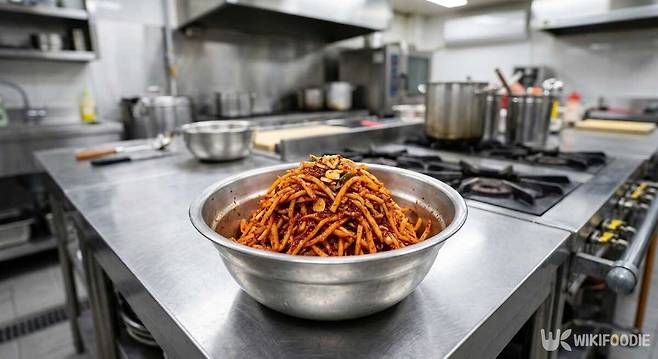 무생채를 사용할 경우 무를 가늘게 채 썰어 고춧가루, 식초, 소금, 설탕을 넣어 버무린다. 마지막에 참기름을 조금 넣으면 향이 좋다.