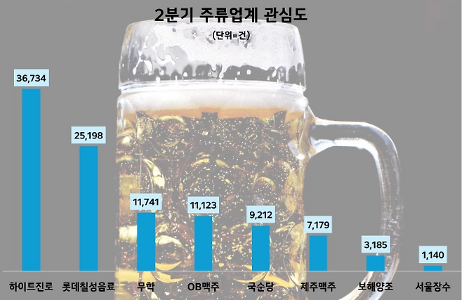 하이트진로가 지난 2분기 국내 주류업체들 중 가장 높은 소비자 관심도를 기록한 것으로 나타났다.