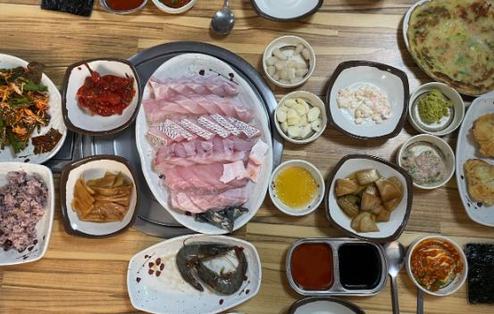 ▶ 민어회: 껍질·부레·등살·배꼽살 등 다양한 부위를 즐길 수 있으며, 24시간 숙성으로 비린내 없이 고소하고 담백한 맛이 특징. 가격은 민어 한 마리 기준 10만20만 원대.