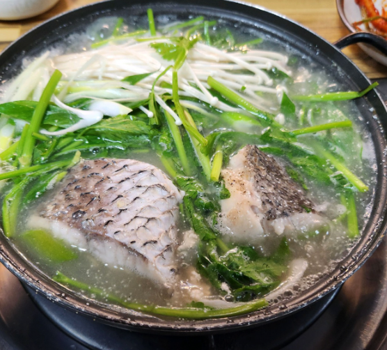 ▶ 민어탕: 맑은탕(지리)과 매운탕으로 선택 가능. 맑은탕은 민어·소고기 육수가 어우러져 깊은 국물 맛, 매운탕은 얼큰하고 칼칼한 국물로 식사에 잘 어울림. 1인분 1만 원대 후반2만 원대 초반.