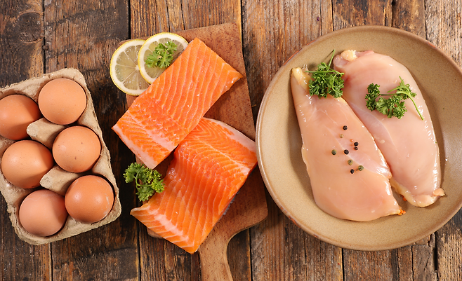 단백질 섭취도 40대 이후 체중 감량에 중요한 역할을 한다. 영양 전문가들은 매 식사마다 25-30g의 단백질을 섭취할 것을 권장하고 있다. 임상 실험 결과에 따르면, 권장량보다 많은 단백질을 섭취하면 체중 감소뿐만 아니라 체지방은 줄이고 근육량은 유지하는 데 도움이 된다. 이는 저칼로리 식단과 일반 식단 모두에서 효과가 있는 것으로 나타났다.