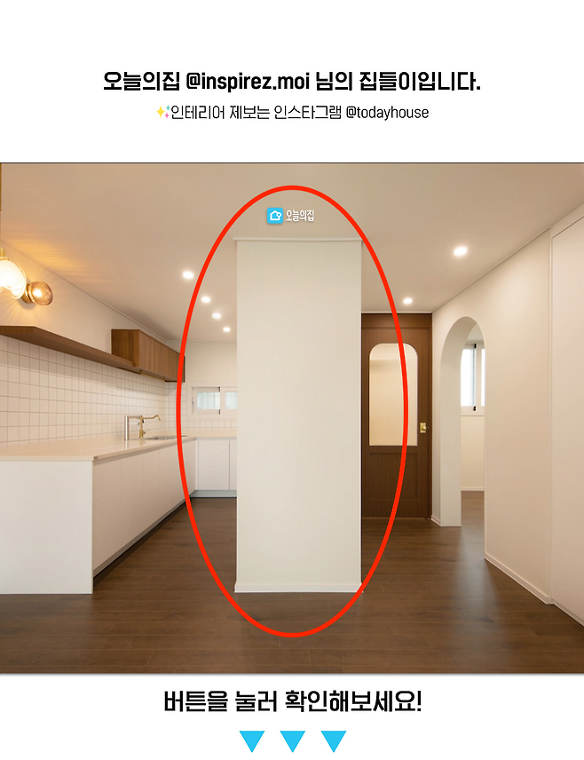 냉장고장 가벽을 설치하면서 중문 앞으로 아주 짧은 복도가 만들어졌어요. 애매하게 남은 공간을 어떡하나 고민하던 중 딱 맞는 사이즈의 수납장! 이케아의 빌리 책장을 발견했습니다. 책장에 도어를 달아서 수납장으로 사용하고 있어요. 그리고 수납장 위의 공간은 기분 따라 조금씩 바꿔가면서 꾸미는 재미가 쏠쏠해요. :) 바로 맞은편 작은방의 아치형 문 뒤에서 바라보면 이렇게 예쁜 앵글이 나온답니다.