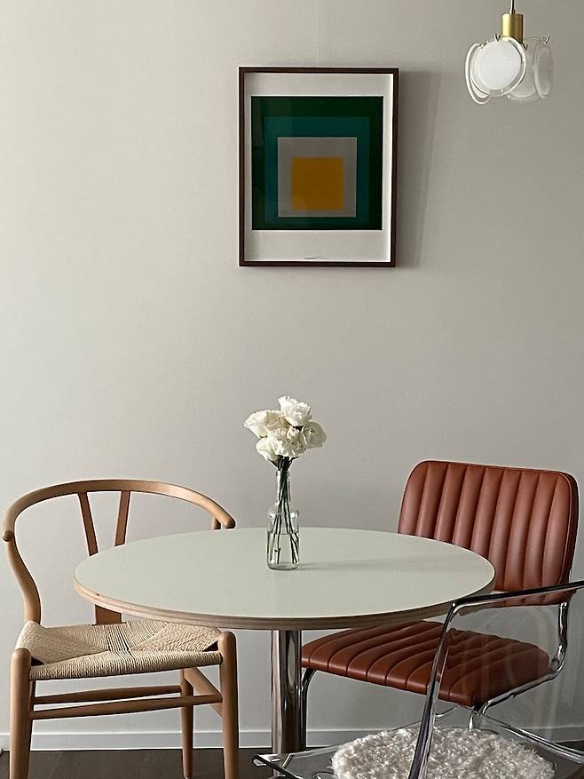 주방 바로 앞에는 원형 테이블을 두어 다이닝 공간을 마련했습니다.