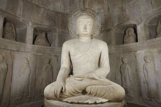석굴암은 토함산 중턱에 위치한 석굴로, 본존불을 중심으로 한 다양한 부조가 방문객들의 탄성을 자아냅니다.