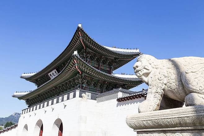 경복궁은 조선 시대 왕조의 중심지로, 역사적 깊이와 아름다운 건축물로 유명합니다. 조선왕조의 5대 궁궐 중 가장 먼저 지어진 이 궁궐은 근정전과 경회루 등 국보급 건물들을 보유하고 있으며, 한복을 입은 방문객들로 북적이는 사랑받는 관광 명소입니다.