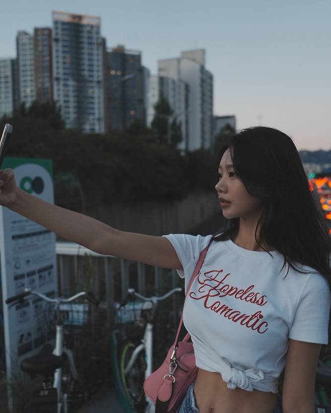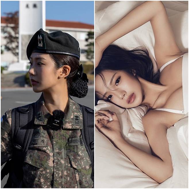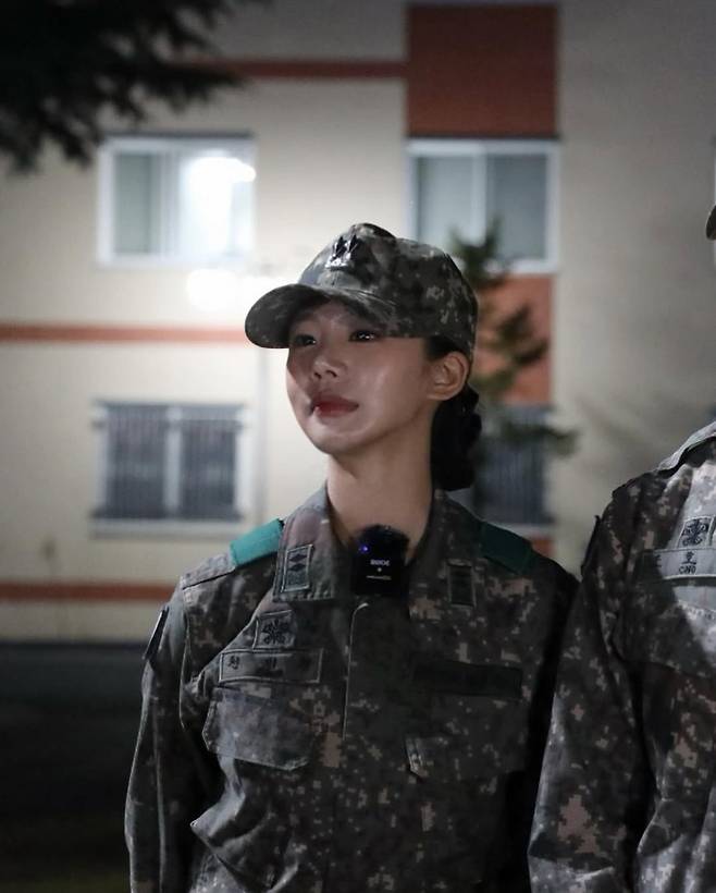 군인 시절의 책임감과 모델로서의 감각이 묘하게 어우러지는 그녀만의 분위기.