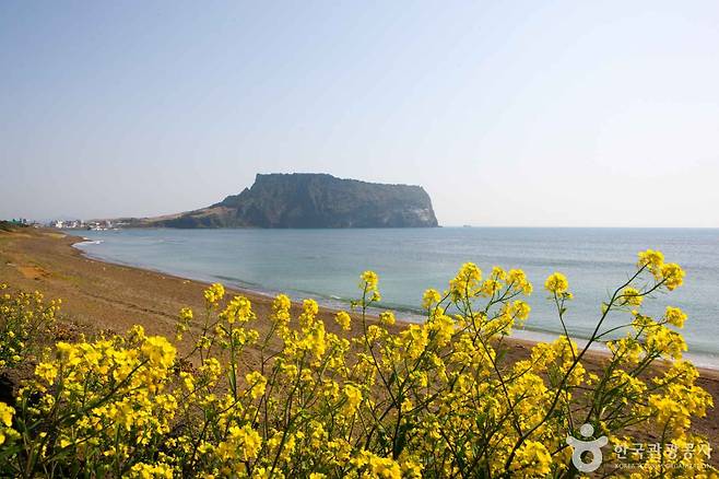 제주도 성산일출봉 부근은 아름다운 일출 풍경뿐 아니라 겨울부터 초봄까지 유채꽃이 만개하는 일출봉유채밭으로도 유명합니다.