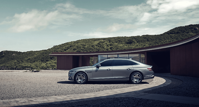 외관은 기존 내연기관 G80의 디자인 기조를 유지하면서도 전기차 전용 디테일을 더했다. 전면부에는 G-매트릭스 패턴이 적용된 크레스트 그릴과 MLA 헤드램프가 장착돼 스포티함과 첨단 감각을 동시에 구현했고, 후면부는 정제된 라인과 조형으로 고급감을 높였다.