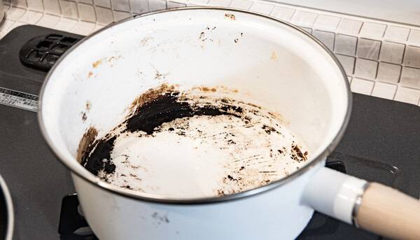 주방 청소에서 빠질 수 없는 만능 아이템이 바로 베이킹소다입니다. 냄비에 물을 붓고 베이킹소다를 2~3스푼 넣어 끓여줍니다. 물이 끓으면서 기포가 생기는데, 이때 탄 자국이 점점 부풀어 오르며 떨어져 나옵니다.