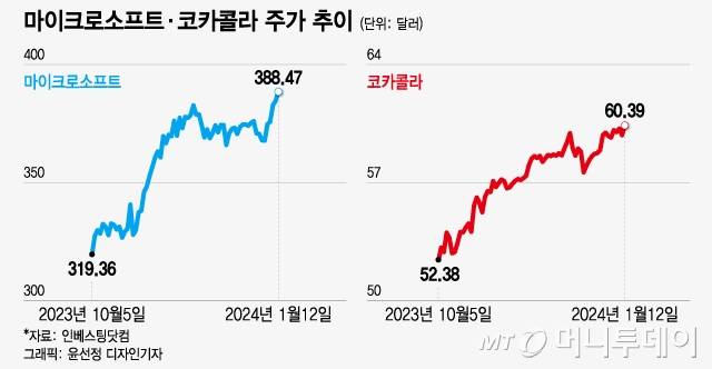 투자자들이 관심이 보이는 우량주는 인공지능(AI) 열풍으로 급등세를 보인 마이크로소프트(MS), 엔비디아 등 대형 기술주다. MS는 지난 12일 종가 기준 시가총액 2조8870억달러를 기록하면서 애플(2조8740억달러)을 시총 1위 자리에서 밀어냈다. 작년 한 해만 230% 넘게 폭등한 엔비디아의 주가는 최근 사상 최고치를 경신하는 등 올해도 상승세를 이어가고 있다. 이 밖에도 코카콜라, 존슨앤드존슨 등 꾸준한 실적을 내는 기업도 주목받고 있다고 WSJ은 전했다.