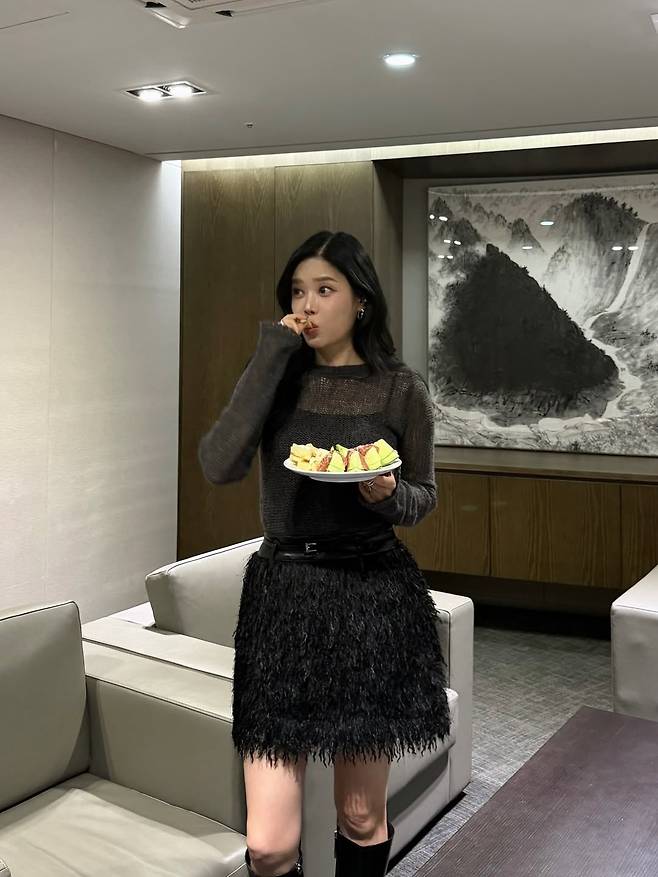 공개된 사진 속 린은 과일이 담긴 접시를 든 채 토끼처럼 동그란 눈을 뜨고 있었다.