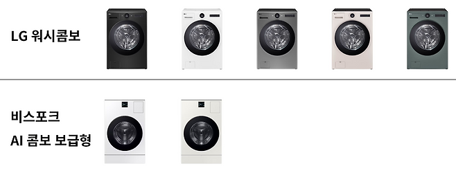 먼저, 색상의 선택권은 LG 워시콤보가 더 많다. 비스포크 AI 콤보 보급형은 에센셜 화이트, 그레이지 2가지 색상만 출시된 상태다. LG 워시콤보는 블랙과 화이트 외 그린, 베이지, 스테인리스까지 총 5가지 색상 중 하나를 선택할 수 있다.