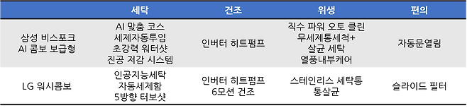 LG 워시콤보 vs 삼성 비스포크 AI 콤보 보급형 비교