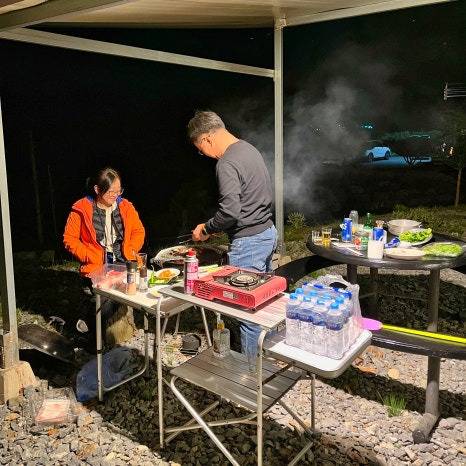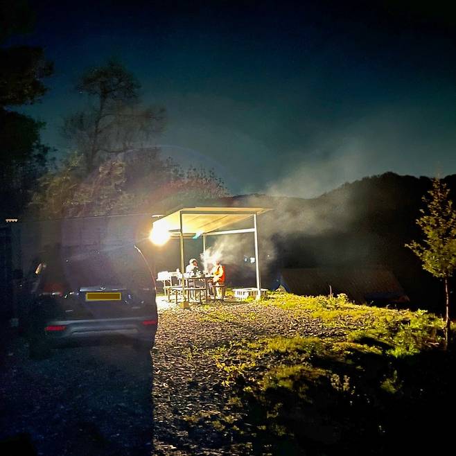 외부에서 고기 구워 먹고