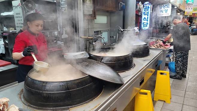 대학생과 서민들의 도움을 많이 받은 또 다른 곳은 소머리국밥집이다. 중앙시장 안쪽에 위치한 광덕식당은 75년된 중앙시장 터줏대감이다. 서민갑부에도 출연한 백석연(74) 광덕식당 2대 대표는 "옛날에는 한끼가 중요했지만 이제는 맛과 영양, 건강 측면에서 평가를 많이 한다. 옛날에는 국밥이 서민음식이었는데 지금은 맛으로 결정짓는 시대인 거 같다. 맛이 있어야 하고 청결해야 하고 친절해야 한다. 이런 것들을 갖췄기 때문에 손님들이 많이 찾는 것 같다"고 인기 비결을 귀띔했다.