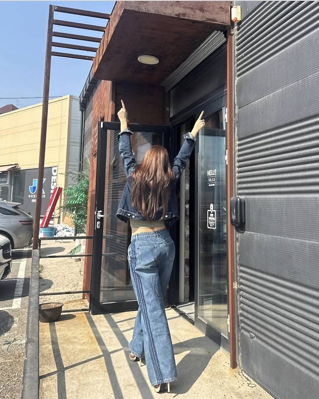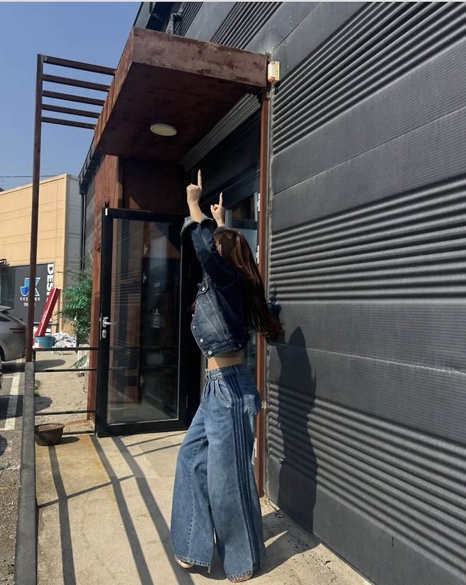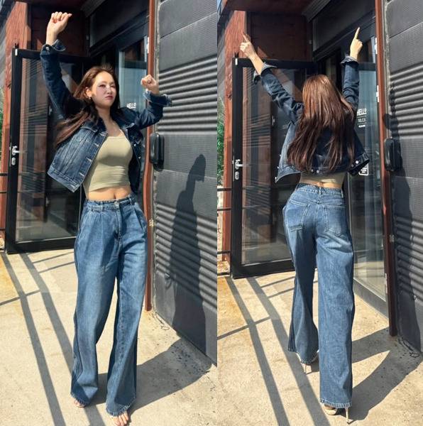 소유는 크롭탑에 진청 데님 재킷, 그리고 하이웨이스트 와이드 데님 팬츠를 매치해 상하의 통일감을 주면서도, 복부 라인이 드러나는 스타일링으로 특유의 건강한 섹시함을 강조했습니다.
