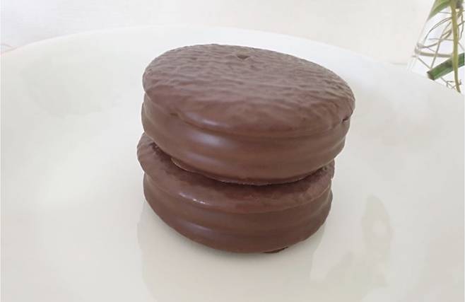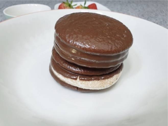 초코파이 2개를 겹쳐서 접시에 올려주세요