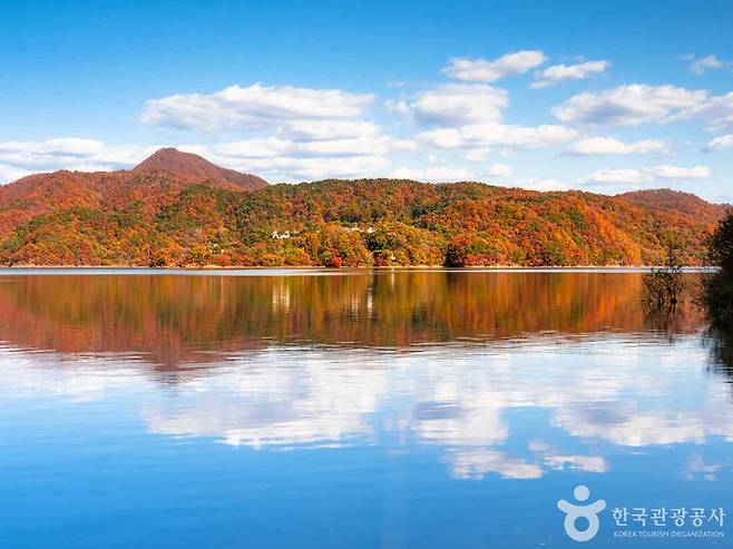 잔잔한 호수와 낙엽의 계절