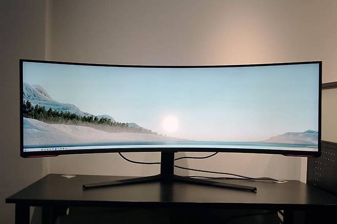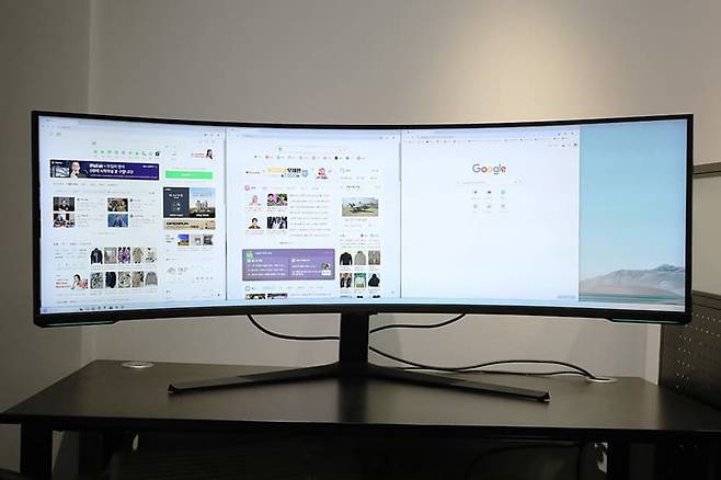 삼성 오디세이 G9 LS57CG950NKXKR을 직접 PC와 연결해보면 7680 x 2160 해상도의 광활한 화면을 체감할 수 있다.