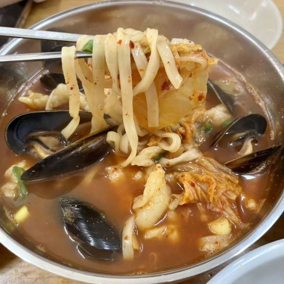 김치와 바지락이 푸짐하게 들어간 김치 칼제비를 맛볼 수 있는 곳. 아는 사람들만 찾아간다는 숨겨진 동대문 맛집이다. 수제비의 피는 얇은 편이며, 국물은 후춧가루가 올라가 칼칼하고 얼큰한 맛이 묘하게 중독성 있는 것이 특징이다. 현금 결제와 계좌이체만 가능하니 참고한다.