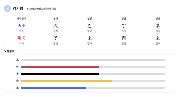 공개된 생년월일이 실제와 다를 경우 결과가 달라질 수 있습니다.