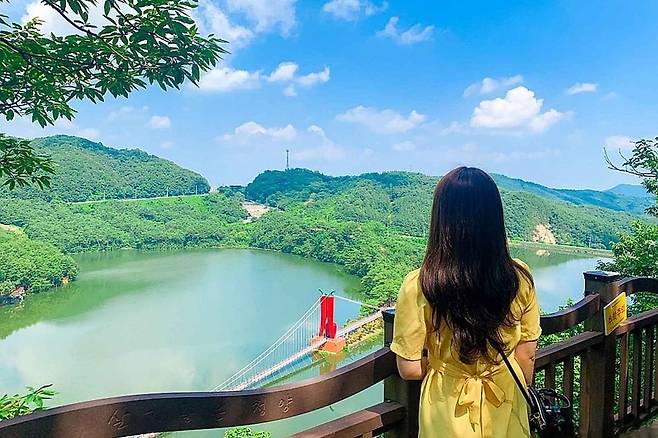 다리의 길이에 비해 출렁거림은 의외로 적지만, 곳곳에 투명한 바닥이 있어 스릴을 느낄 수 있어요. 다리를 건너면 칠갑산 정상으로 향하는 등산로도 이어지고, 호수를 따라 걸을 수 있는 데크길에서는 자연을 온몸으로 만끽할 수 있는 청양 가볼 만한 곳이랍니다.