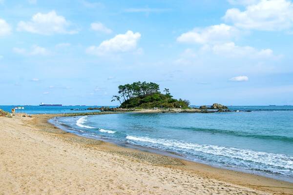 수심이 얕고 새하얀 백사장이 넓은 울산의 진하 해수욕장입니다. 진하 해수욕장은 회야강과 만나는 바다로 담수욕을 즐길 수 있기도 한데요. 백사장 뒤로는 곰솔숲이 펼쳐져 솔숲 내에서 시원한 바닷바람을 만끽하며 산책을 즐기기에도 좋습니다. 야외 파쇄석이 있는 캠핑장도 운영되고 있어 1박 2일 바다 앞 캠핑 명소로도 잘 알려져 있죠.