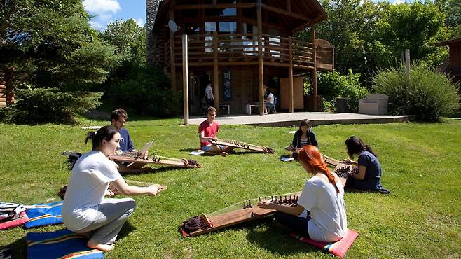 일상 생활의 모든 순간이 한국어 학습의 기회로 이용되고 있습니다. 예를 들어, 아침 7시 반에는 학생들이 징과 꽹과리를 들고 다른 학생들을 깨우는 일을 맡습니다.