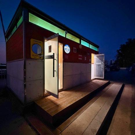 넓은 주차장과 공중 화장실 등의