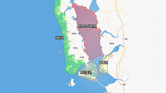 안면도 동쪽을 천수만 내만권으로