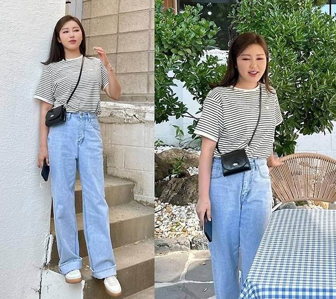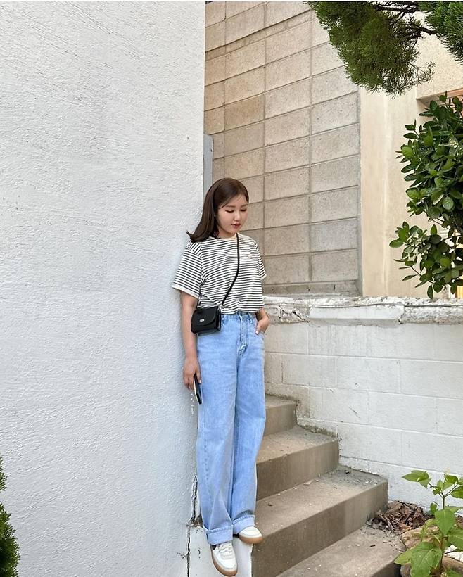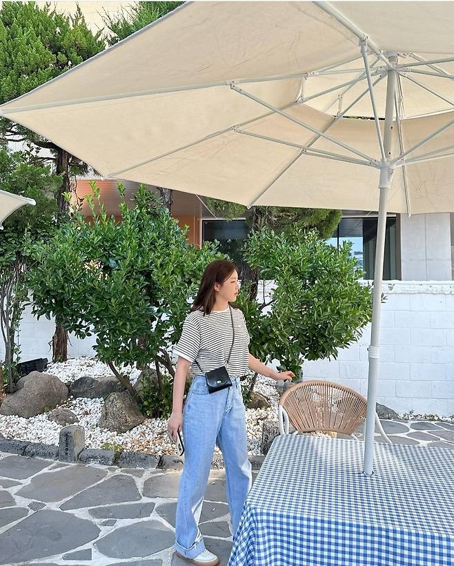 또, 송가인은 라이트 블루데님 팬츠를 매치해 다리를 길어 보이게 하며 밝고 시원한 캐주얼한 매력을 발산했습니다.