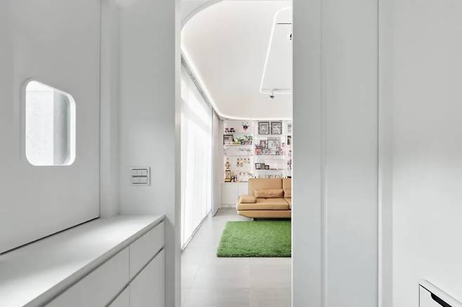 이 집의 여정은 현관에서 특별함을 시작한다. 전통적인 경계를 허물고, 비행기 탑승을 떠올리게 하는 독창적인 디자인의 현관은 단순한 출입구를 넘어 새로운 모험의 출발점이 된다.