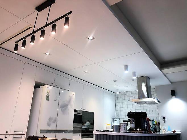 주방등은 다운라이트와 직부등 설치했고요, 벽등도 하나 달아줬어요.