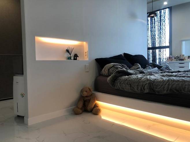 밑에는 간접조명 박스를 만들어 분위기를 낼 수 있게 했어요.
