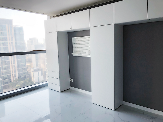 가벽 뒤에는 이케아 팍스를 시공했어요. 붙박이장 가구 치고는 꽤 괜찮아요.
