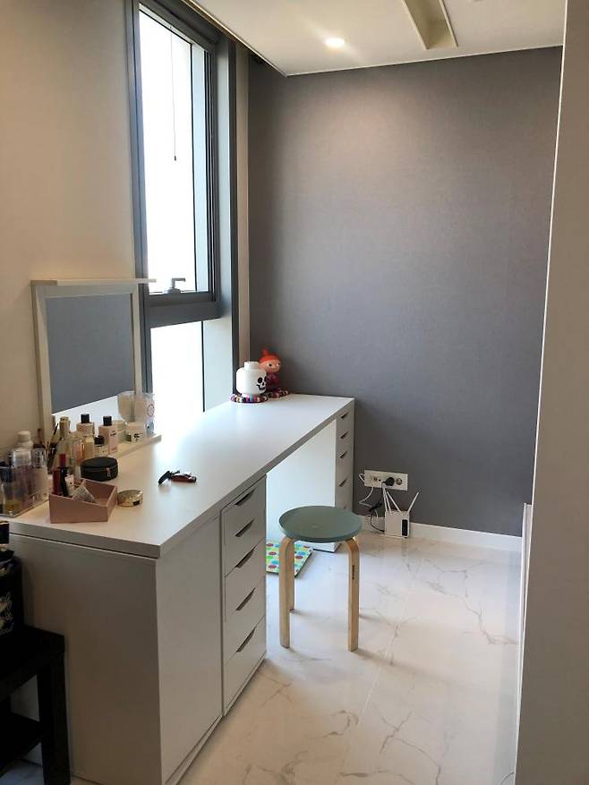 전체를 다 막기보다는 창가 쪽을 띄어 답답함을 없애는 동시에 제가 사용할 수 있는 작은 서재 겸 화장대 공간을 마련했어요.