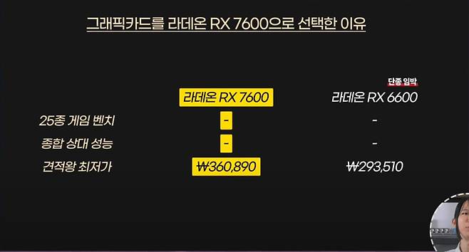그래픽카드는 아까 보셨던 견적과 동일한 RX 7600이고요.