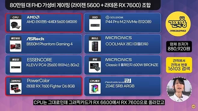 AMD (라이젠 5600 + RX 7600) - https://kjwwang.com/shop/pc_estimate.html?action=view&es_sn=16103