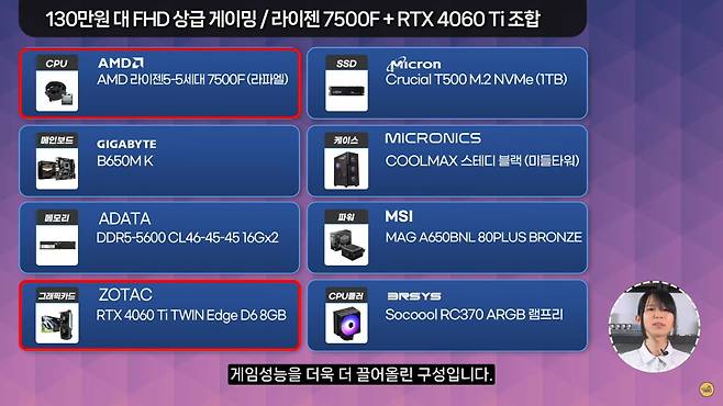 직전 RX 7600 견적에서 그래픽카드를 RTX 4060 Ti로 바꾸면서