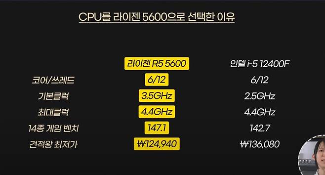 100만원 아래에서는 늘 말씀드리지만 CPU로 라이젠 5600과 i5 12400F