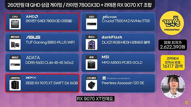 RX 9070 XT인데요. 그래도 일단 견적 구성 도와드렸습니다.