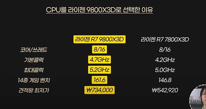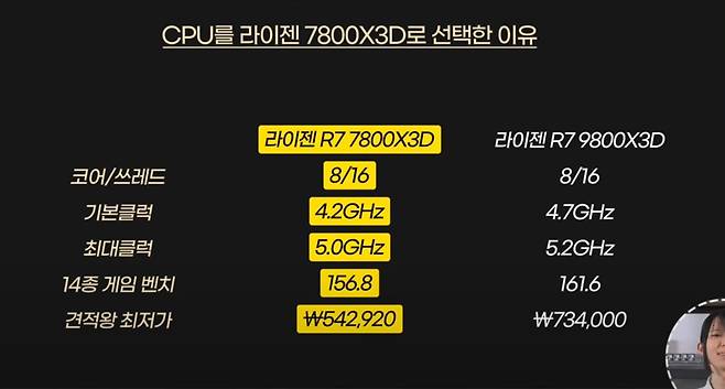 CPU는 7800X3D보다 좀 더 높은 게임성능을 보여주고, 발열구조가 개선된