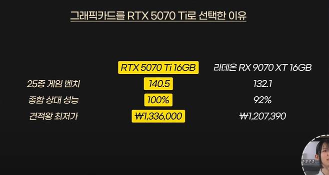 다른부품들은 5070 Ti 견적과 똑같고, 파워는 그래픽카드 전력소모량이