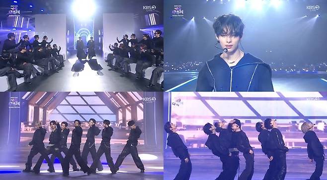 무대는 등장부터 남다른 포스를 자아냈다. 제이와 제이크, 정원과 선우, 성훈과 니키, 마지막 주자인 희승까지 멤버들은 런웨이를 걷듯 시크한 워킹을 선보이며 관객의 시선을 사로잡았다. 이어 완벽하게 맞춘 칼군무와 고난도 댄스브레이크로 무대의 완성도를 높였다.