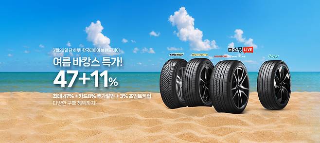 한국타이어앤테크놀로지(이하 한국타이어)가 오는 7월 23일 단 하루 동안 네이버 공식 브랜드스토어에서 ‘브랜드데이’ 프로모션과 ‘쇼핑라이브’ 방송을 진행하고 특가 할인 및 다양한 혜택을 제공한다.