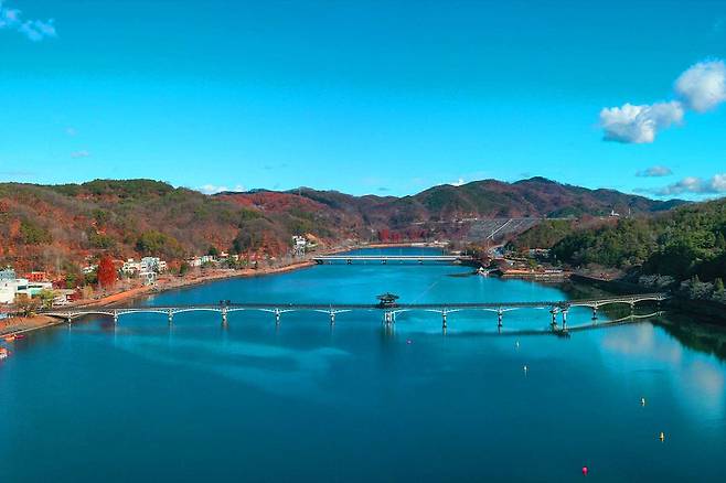 국내에서 가장 긴 목조 다리인 안동 월영교는 가을에 방문하기 특히 좋은 곳입니다.