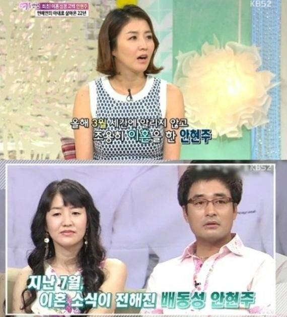 안현주 씨는 "남편인 배동성이 연예인이기 때문에 어쩔 수 없이 방송에서 행복한 모습만 보일 수밖에 없었다"라고 설명하며 "곪았다가 터진 이혼이 일반인에겐 갑작스러운 일로 비쳐 힘들었다"라고 당시 심경을 고백했습니다.