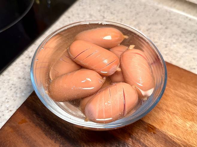 1️⃣ 소세지 180g 준비했어요.