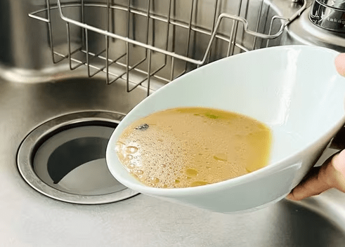 라면 사발: 종이그릇 사용해 기름통째 버리기(배관 접촉 0%).